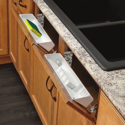 Kitchen Cabinet Sink Front Tray - Hafele Sink Front Tip-Out Tray Set for Kitchen or Vanity ... : The front of the cabinet also has frosted glass doors which add to the modern feel while all of the hardware is in chrome which adds a bit of sparkle to an already glossy.. In this case, turn the gear clockwise to the appropriate number of turns. Of all my kitchen cabinets, this one under the sink was actually the least scary. Choose from contactless same day delivery, drive up and more. A short video showing how to install a sink front tray into a kitchen or bathroom cabinet. Real home innovations under cabinet spill tray.