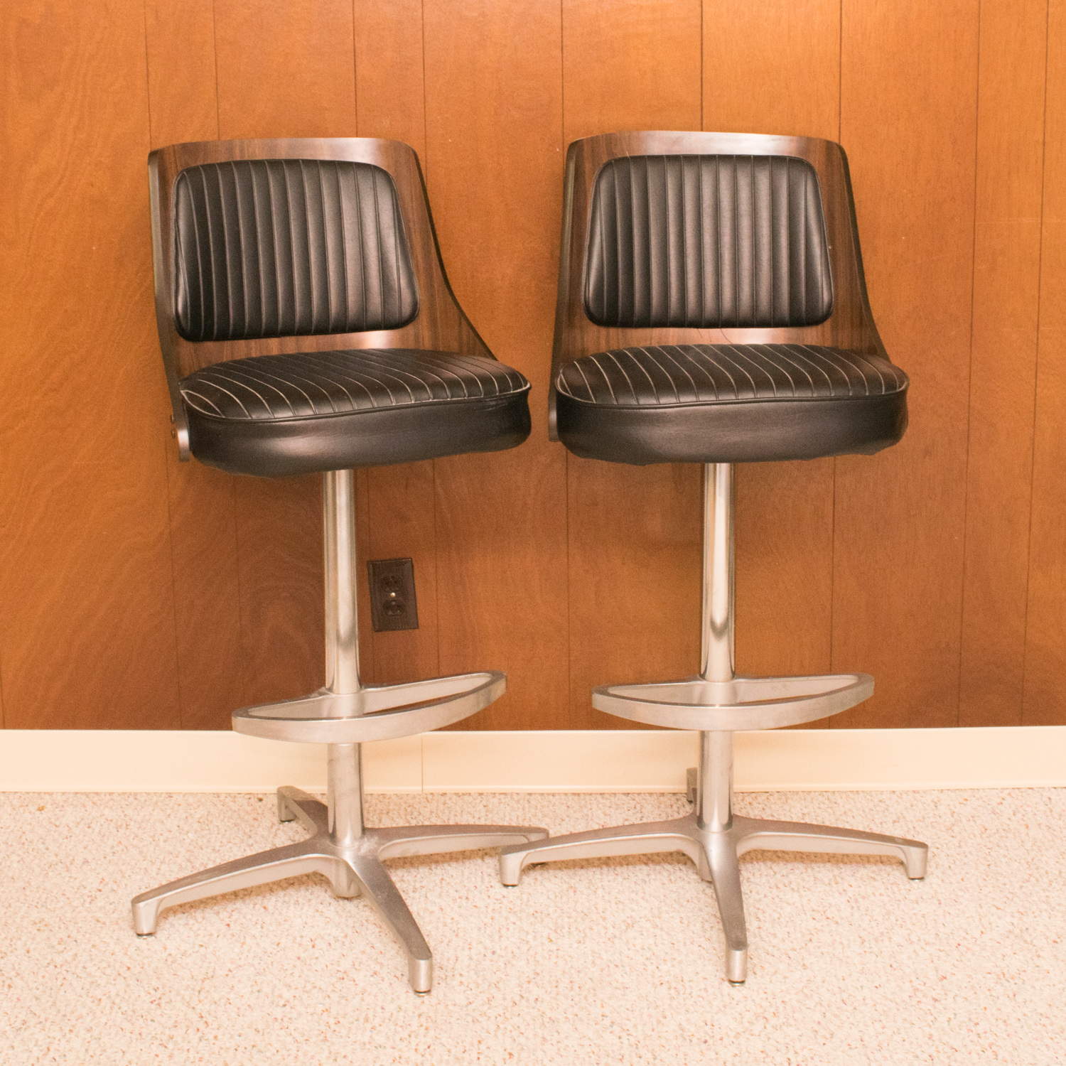 Besides chromcraft dinette set and traditional dining room furniture, chromcraft offers solid wood bar stools with upholstered seat and back, available in different fabrics or vinyl. Browse thousands of designer pieces and make an offer today! Our selection of bar stools for the greater huntington, ny area. Chromcraft chair m110 high back. Clean brown vinyl and wood toned formica bar with chrome footrest, with.