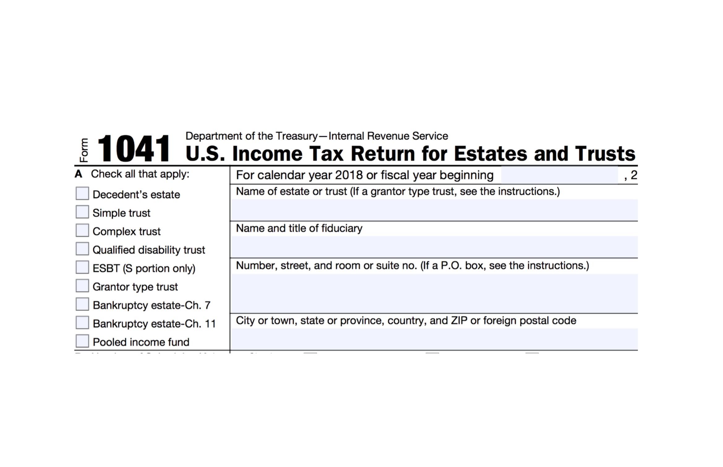 U S Income Tax Return For Estates And Trusts Form 1041